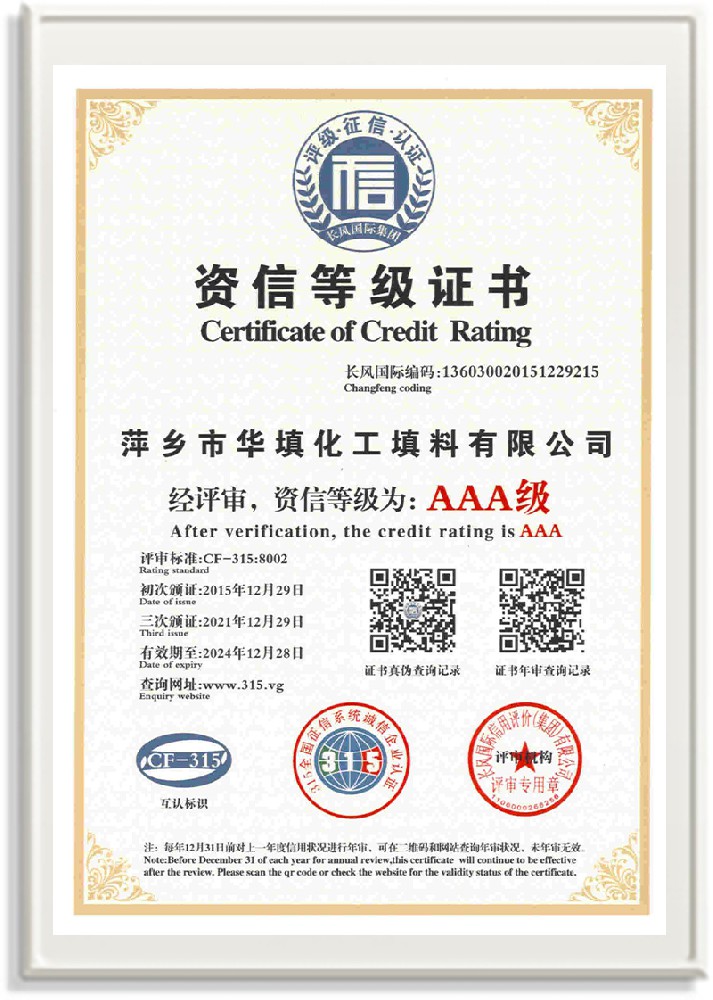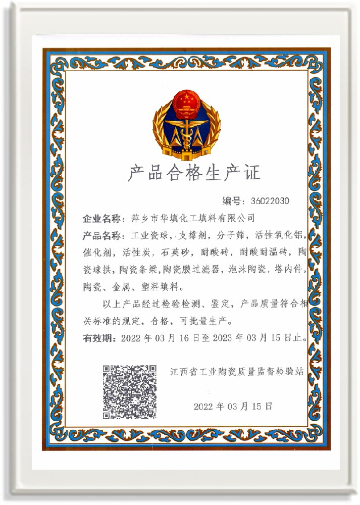 萍鄉(xiāng)市華填化工填料有限公司,位于320國道、109國道、浙贛鐵路、昌金高速公路貫穿其中,交通便利,是江西西部一顆燦爛明珠,創(chuàng)建于20世紀(jì)70年代初期,是中國石油天然氣股份有限公司“能源一號網(wǎng)”會員企業(yè)、中國石化物資采購電子商務(wù)網(wǎng)絡(luò)和中國海洋石油總公司采辦業(yè)務(wù)系統(tǒng)成員單位,是上海大學(xué)江西材料基因組工程產(chǎn)業(yè)研究院工業(yè)陶瓷產(chǎn)業(yè)創(chuàng)新聯(lián)盟基地,且通過ISO9001:2015質(zhì)量管理體系、ISO14001:2015環(huán)境管理體系、ISO45001:2018職業(yè)健康安全管理體系認(rèn)證的化工填料生產(chǎn)企業(yè)。公司擁有陶瓷、塑料、金屬填料、催化劑、活性氧化鋁、分子篩等產(chǎn)品生產(chǎn)線,現(xiàn)有固定資產(chǎn)3616萬元,占地面積3.8萬平方米。公司具有悠久的生產(chǎn)歷史、雄厚的技術(shù)力量和先進(jìn)的生產(chǎn)工藝設(shè)備,可生產(chǎn)工業(yè)瓷球(支撐劑)、陶瓷、金屬、塑料質(zhì)的規(guī)整、散堆化工填料及分子篩、催化劑、生化濾料、活性氧化鋁、石化助劑、活性炭、環(huán)保材料、耐火材料等系列的200多種規(guī)格型號產(chǎn)品。